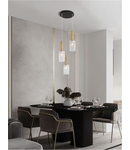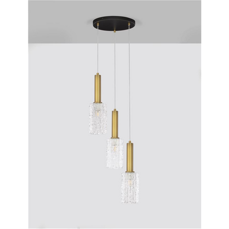 Lampa suspendata CERTA Alama Aur Negru Metal Sticla Structurata Transparenta LED E27 3x12W 230V Bec Exclus IP20 Dimensiuni:38.5 H:120cm