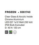 Lampa suspendata FROZEN Sticla clara & Acrylic Inside Crom Aluminiu LED E27 1x12 Wat 230 Volt IP20 Fara bec Novaluce