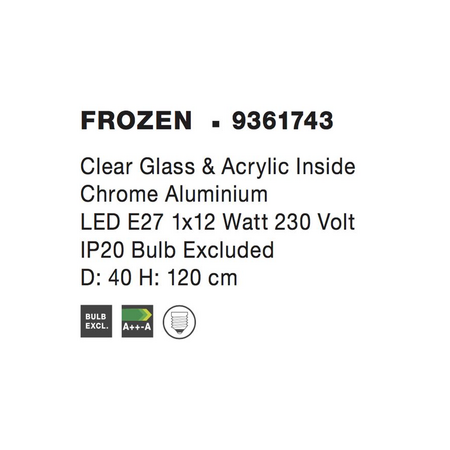 Lampa suspendata FROZEN Sticla transparenta Acrilic Interior Crom Aluminiu LED E27 1x12 Watt 230 Volti IP20 Bec Exclus Dimensiuni: 40 H: 120 cm