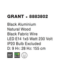 Lampa suspendata GRANT Negru Aluminiu Natural Lemn Negru Fabric Wire LED E14 1x5 Wat 230 Volt IP20 Fara bec Novaluce