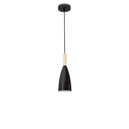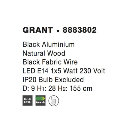 Lampa suspendata GRANT Negru Aluminiu Natural Lemn Tesatura Neagra Fir LED E14 1x5 Watt 230 Volti IP20 Bec Exclus Dimensiuni: 9 H1: 28 H2: 155 cm