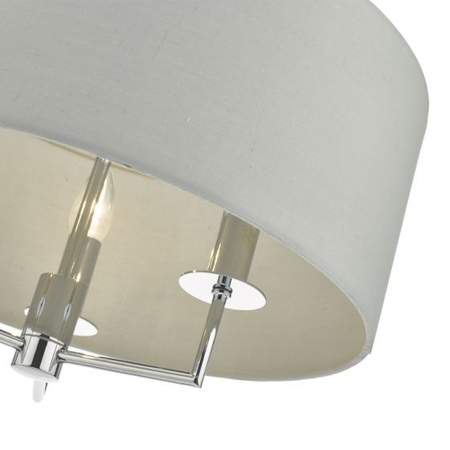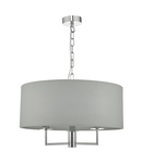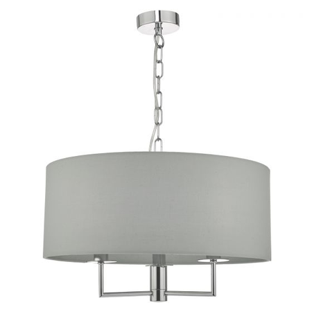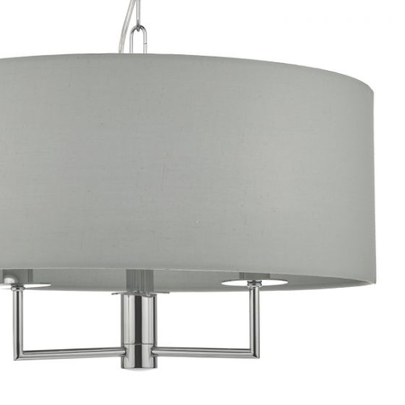 The understated Jamelia shadelier features polished chrome detailing; complete with a grey cotton shade and matching lining. Perfect for adding sophisticated style; available as a 5 or 3-light pendant.Measurements H min35 - max125 x O45cm
