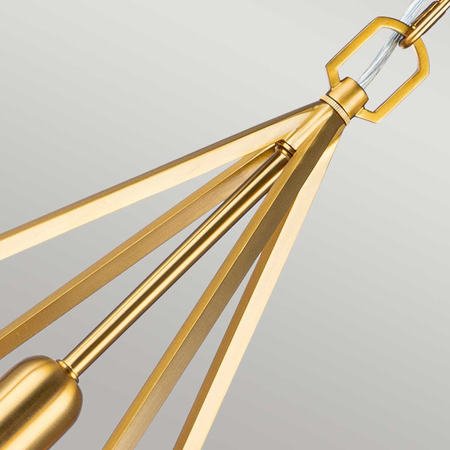 The medium Nico pendant feature a cage profile with dramatic geometric flair. Clean lines seamlessly transition into curves, which all meet at a perfect point by using superior hand-welding techniques. The exposed bulbs are central to the design, so Edison-style LED bulbs are a perfect choice. Finished in Burnished Brass.Box Dimensions: 33.5 x 33.5 x 67cm
