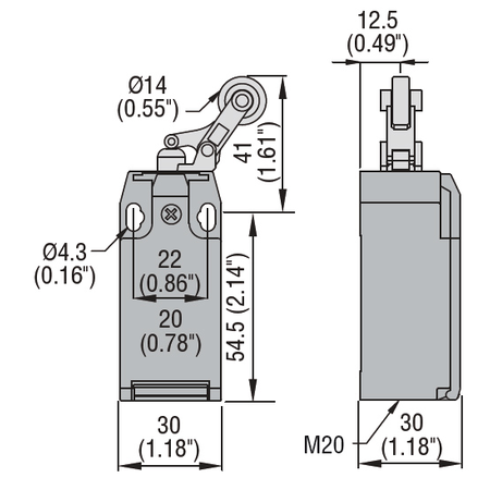 Limitator de cursa, K SERIES, ROLLER SIDE PUSH LEVER, 1 BOTTOM CABLE ENTRY. DIMENSIONS TO EN 50047, METAL BODY, CONTACTS 3NC SLOW BREAK. PLASTIC ROLLER Lovato