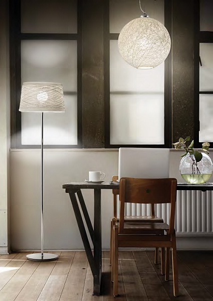 Corp de iluminat suspendat, cu abajurul alcatuit dintr-o tesatura de fire ignifugate . Cadru metalic cromat. Cablurile electrice cat si firele de sustinere din otel sunt reglabile in inaltime cu ajutorul unui sistem de blocare automat. Lustra este dotata cu 3 becuri (neincluse), cu soclu de tip E27, dar se poate echipa optional cu becuri tip LED, halogen sau economice. Fiind un accesoriu de design de tip modern aduce un plus de refinament incaperilor indeplinindu-si in acelasi timp si rolul functional