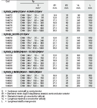 Mansonul liniar monopolar CHM a fost conceput pentru imbinarea cablurilor monopolare de M.T., cu izolatie polimerica (PVC, PE, XLPE sau EPR), cu diferite straturi semiconductoare si ecran din fire de cupru sau banda de aluminiu.