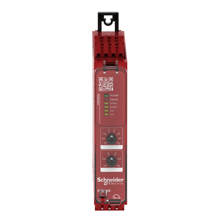gama de produse: Harmony Safety Automation Tip produs sau componenta: Modul de siguranta nume modul de siguranta: XPSUAB aplicatie modul de siguranta: Pentru monitorizarea electrica a unor posturi de comanda cu doua maini Pentru aplicaţii cu contact comutator de siguranţă For emergency stop, guard and light curtain monitoring Monitoring antivalent contacts functie a modulului: Cablaj cu 1 canal pentru monitorizarea opririi de urgenta Guard monitoring 1-channel wiring Monitoring 1 PNP sensor Monitoring two-hand control station type IIIA Magnetic switch monitoring Light curtain monitoring RFID switch Monitorizare a echipamentelor de protectie electro-sensibil (ESPE) Monitorizare senzor de proximitate nivel de securitate: Poate ajunge la PL = c conformitate cu ISO 13849-1 Poate atinge SILCL 1 conformitate cu IEC 62061 Can reach SIL 1 conformitate cu IEC 61508 fiabilitatea datelor despre securitate: MTTFd >= 30 years conformitate cu ISO 13849-1 Dcavg < 60 % conformitate cu ISO 13849-1 PFHd = 1177E-09 1/h conformitate cu ISO 13849-1 HFT = 0 conformitate cu IEC 62061 PFHd = 1177E-09 1/h conformitate cu IEC 62061 SFF > 60% conformitate cu IEC 62061 HFT=0 conformitate cu IEC 61508-1 PFHd = 1177E-09 1/h conformitate cu IEC 61508-1 SFF > 60% conformitate cu IEC 61508-1 Type = B conformitate cu IEC 61508-1 tip circuit electric: NC pair PNP pair Antivalent pair OSSD pair conexiuni - borne: Bloc terminal cu arc detasabil, 0.2...2.5 mm² rigid sau flexibil Bloc terminal cu arc detasabil, 0.25...2.5 mm² flexibil cu pin un singur conductor Bloc terminal cu arc detasabil, 0.2...1.5 mm² rigid sau flexibil conductor dublu Bloc terminal cu arc detasabil, 2 x 0.25...1 mm² flexibil cu pin without cable end, with bezel Bloc terminal cu arc detasabil, 2 x 0.5...1.5 mm² flexibil cu pin cu pini cu guler [Us] tensiune de alimentare nominala: 48...240 V c.a./c.c. - 10...10 % timp de sincronizareintre intrari: 0,5 s 2.2 s tip de pornire: Automatic/manual/monitored puterea consumată in W: 2,0 W 48 V c.c. puterea consumată in VA: 6,5 VA 240 V c.a. 50/60 Hz tip de protectie intrare: Intern, electronic safety outputs: 1 C/O safety inputs: 1 safety input 24 V c.c. 5 mA maximum wire resistance: 500 Ohm compatibilitate intrare: Normally closed circuit conformitate cu ISO 14119 Limitatoare XC conformitate cu ISO 14119 Contact mecanic conformitate cu ISO 14119 Normally closed circuit conformitate cu ISO 13850 Antivalent pair conformitate cu ISO 14119 OSSD pair conformitate cu IEC 61496-1-2 Two-hand control conformitate cu EN 574/ISO 13851-III A Senzori de proximitate PNP 3 fire [Ie] curent nominal de utilizare: 5 A AC-1 for normally open relay contact 3 A AC-15 for normally open relay contact 5 A DC-1 for normally open relay contact 3 A DC-13 for normally open relay contact 3 A AC-1 for normally closed relay contact 1 A AC-15 for normally closed relay contact 2 A DC-1 for normally closed relay contact 1 A DC-13 for normally closed relay contact Control Outputs: 2 pornit/oprit configurable pulsed output tipul intrării/ieşirii: Semiconductor pulsed diagnostic output 24 V c.c., 20 mA Z1, not safety-related [Ith] curent termic convenţional in aer liber: 3 A calibrul fuzibilului asociat: 6 A gG pentru ieşire releu conformitate cu IEC 60947-1 curent minim de iesire: 10 mA pentru ieşire releu tensiune minima de iesire: 15 V pentru ieşire releu timp de raspuns maxim la o iesire deschisa: 20 ms [Ui] tensiune nominala de izolatie: 250 V (grad de poluare 2) conformitate cu IEC 60947-1 [Uimp] tensiune de tinere la impuls: 4 kV categorie de supratensiune II conformitate cu IEC 60947-1 semnalizare locala: LED (verde) for alimentat LED (rosu) for error LED (galben) for start LED (galben) for safety status LED (galben) for safety input S12 LED (galben) for safety input S13 suport de montare: Sina DIN simetrica, 35 mm adancime: 120 mm temperatura ambientala de functionare: -25…55 °C inaltime: 100 mm latime: 22,5 mm greutate neta: 0,200 kg standarde: SR EN 60947-5-1 IEC 61508-1 functional safety standard IEC 61508-2 functional safety standard IEC 61508-3 functional safety standard IEC 61508-4 functional safety standard IEC 61508-5 functional safety standard IEC 61508-6 functional safety standard IEC 61508-7 functional safety standard ISO 13849-1 functional safety standard IEC 62061 functional safety standard certificari produs: TUV cULus grad de protectie IP: IP20 (borne) conformitate cu SR EN 60529 IP40 (carcasă) conformitate cu SR EN 60529 IP54 (mounting area) conformitate cu SR EN 60529 Umiditate relativa: 5…95 % fara condensare