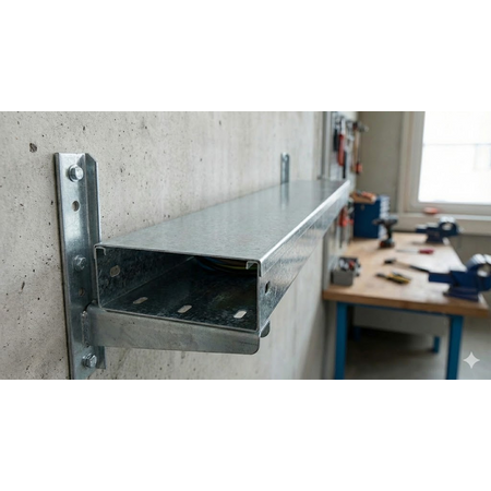 • Jgheab metalic (pat de cablu) cu dimensiunea de 50x35 milimetri, realizat din tabla de otel zincat pentru rezistenta in timp.
