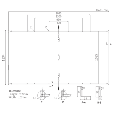 Dimensiuni: 2093 x 1134 x 35 mm.