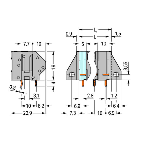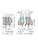 Ratings per: IEC/EN 60664-1; Tesiune nominala (III/3): 630; V Tensiune nominala de supratensiune (III/3): 8; kV Tensiune nominala (III/2): 1000; V Tensiune nominala de supratensiune (III/2): 8; kV Tesiune nominala (II/2): 1000; V Tensiune nominala de supratensiune (II/2): 8; kV Curent nominal: 32; A Legend (ratings): (III / 2) ≙ Overvoltage category III / Pollution degree 2; Tensiune nominala UL (Use Group B): 300; V Curent nominal UL (Use Group B): 20; A Tensiune nominala UL (Use Group C): 150; V Curent nominal UL (Use Group C): 20; A Tensiune nominala UL (Use Group D): 300; V Curent nominal UL (Use Group D): 10; A Certificari: UL 1059; Tensiune nominala CSA (Use Group B): 300; V Curent nominal CSA (Use Group B): 20; A Tensiune nominala CSA (Use Group C): 150; V Curent nominal CSA (Use Group C): 20; A Tensiune nominala CSA (Use Group D): 300; V Curent nominal CSA (Use Group D): 10; A Tehnologie conexiune: CAGE CLAMP®; Tip actionare: Operating tool; Solid conductor: 0,08 … 4 mm² / 28 … 12 AWG; Fine-stranded conductor: 0,08 … 4 mm² / 28 … 12 AWG; Fine-stranded conductor; with insulated ferrule: 0,25 … 2,5 mm²; Fine-stranded conductor; with uninsulated ferrule: 0,25 … 2,5 mm²; Strip length: 8 … 9 mm / 0.31 … 0.35 inch; Conductor connection direction to PCB: 45; ° Numar poli: 9; Numar total de conexiuni: 9; Total number of potentials: 9; Numar tipuri de conexiuni: 1; Numar nivele: 1; Number of jumper slots: 1; Distanta intre pini: 10 mm / 0.394 inch; Latime: 86,5 mm / 3.406 inch; Inaltime: 23 mm / 0.906 inch; Inaltime de la fata: 19 mm / 0.748 inch; Adancime: 22,9 mm / 0.902 inch; Lungimea pinului de contact: 4; mm Solder pin dimensions: 0,8 x 1,2 mm; Diametrul de gaurire cu toleranta: 1,5 (+0,1) mm; PCB contact: THT; Solder pin arrangement: over the entire terminal strip (in-line); Number of solder pins per potential: 2; Culoare: gray; Material group: I; Material izolator: Polyamide 66 (PA 66); Flammability class per UL94: V0; Clamping spring material: Chrome nickel spring steel (CrNi); Contact material: Cupru electrolitic(ECu); Contact plating: tin-plated; Fire load: 0,542; MJ Greutate: 26,5; g Temperatura lucru: -60 … +105 °C; Product Group: 4 (Printed Circuit); Tip ambalare: BOX; Tara de origine: PL; GTIN: 4044918671385; Customs tariff number: 85369010000;