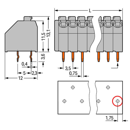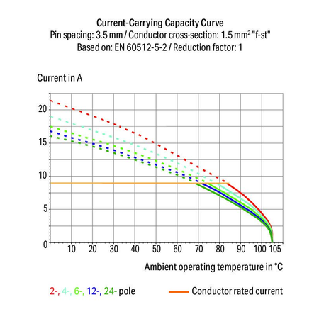 Ratings per: IEC/EN 60664-1; Tesiune nominala (III/3): 250; V Tensiune nominala de supratensiune (III/3): 4; kV Tensiune nominala (III/2): 320; V Tensiune nominala de supratensiune (III/2): 2,5; kV Tesiune nominala (II/2): 630; V Tensiune nominala de supratensiune (II/2): 2,5; kV Curent nominal: 8; A Legend (ratings): (III / 2) ≙ Overvoltage category III / Pollution degree 2; Tensiune nominala UL (Use Group B): 300; V Curent nominal UL (Use Group B): 8; A Tensiune nominala UL (Use Group D): 300; V Curent nominal UL (Use Group D): 5; A Certificari: UL 1059; Tensiune nominala CSA (Use Group B): 300; V Curent nominal CSA (Use Group B): 10; A Tensiune nominala CSA (Use Group D): 300; V Curent nominal CSA (Use Group D): 10; A Tehnologie conexiune: Push-in CAGE CLAMP®; Tip actionare: Push-button; Solid conductor: 0,2 … 1,5 mm² / 24 … 16 AWG; Fine-stranded conductor: 0,2 … 1,5 mm² / 24 … 16 AWG; Fine-stranded conductor; with insulated ferrule: 0,25 … 1 mm²; Fine-stranded conductor; with uninsulated ferrule: 0,25 … 1 mm²; Strip length: 8,5 … 9,5 mm / 0.33 … 0.37 inch; Conductor connection direction to PCB: 45; ° Numar poli: 8; Numar total de conexiuni: 8; Total number of potentials: 8; Numar tipuri de conexiuni: 1; Numar nivele: 1; Distanta intre pini: 3,5 mm / 0.138 inch; Latime: 29,5 mm / 1.161 inch; Inaltime: 16,7 mm / 0.657 inch; Inaltime de la fata: 13,1 mm / 0.516 inch; Adancime: 12 mm / 0.472 inch; Lungimea pinului de contact: 3,6; mm Solder pin dimensions: 0,4 x 0,75 mm; Diametrul de gaurire cu toleranta: 1 (+0,1) mm; PCB contact: THT; Solder pin arrangement: over the entire terminal strip (staggered); Number of solder pins per potential: 1; Culoare: orange; Material group: I; Material izolator: Polyamide 66 (PA 66); Flammability class per UL94: V0; Clamping spring material: Copper alloy; Contact material: Cupru electrolitic(ECu); Contact plating: tin-plated; Fire load: 0,078; MJ Greutate: 3,9; g Temperatura lucru: -60 … +105 °C; Product Group: 4 (Printed Circuit); Tip ambalare: BOX; Tara de origine: CH; GTIN: 4044918648738; Customs tariff number: 85369010000;