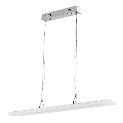 Corp de iluminat suspendat, cu abajurul din acrilic turnat sub forma unei singure piese. Cadru metalic cromat. Cablul electric cat si firele de sustinere din otel sunt reglabile in inaltime cu ajutorul unui sistem de blocare automat. Pendulul este dotat cu 7 becuri (incluse), de tip LED. Fiind un accesoriu de design de tip modern aduce un plus de refinament incaperilor indeplinindu-si in acelasi timp si rolul functional.