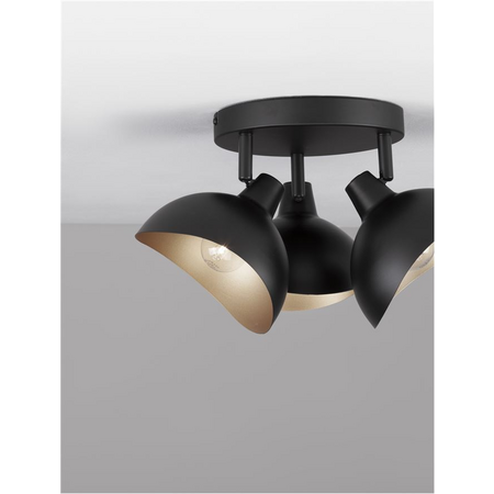 Plafoniera GETI Mat Negru & Auriu Metal LED E14 3x5 Wat 230Volt IP20 Fara bec Novaluce
