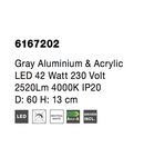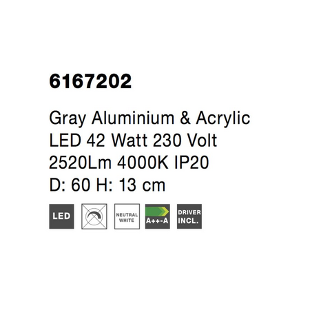 Plafoniera RANDO Gri Metal Acrilic LED 42W 2520Lm 4200K IP20 Dimensiuni: 60 H: 13 cm