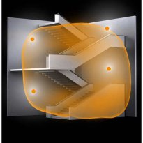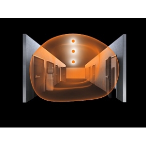 Lampa are incorporat complet sub abajur un senzor de miscare performant ce actioneaza pe o raza intre 1 si 8 ml,acopera o suprafata de aproximativ 50 mp.