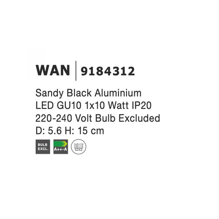 Plafoniera WAN Nisipiu Negru Aluminiu Adjustable GU10 1x35 Wat 230 Volt IP20 Fara bec Novaluce