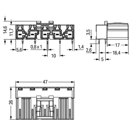 Solder pin dimensions: 1 x 0,8 mm;