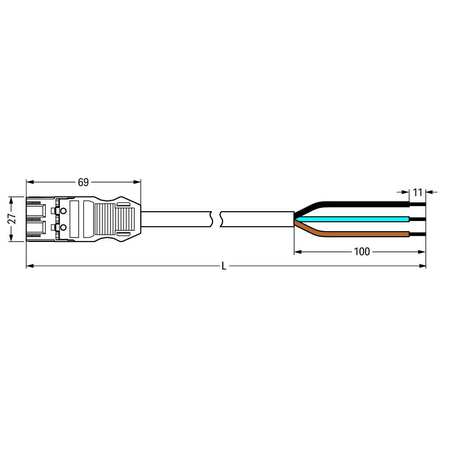 pre-assembled connecting cable; Eca; Plug/open-ended; 3-pole; Cod. S; H05VV-F 3 x 1.5 mm²; 5 m; 1,50 mm²; brown Wago