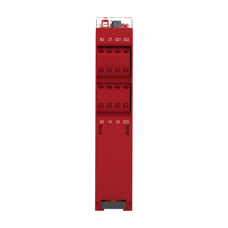 gama de produse: Harmony Safety Automation Tip produs sau componenta: Modul de siguranta nume modul de siguranta: XPSUS aplicatie modul de siguranta: Pentru monitorizarea electrica a unor posturi de comanda cu doua maini Monitoring antivalent contacts For emergency stop, guard and light curtain monitoring Pentru monitorizareaintrerupatorului de activare functie a modulului: Buton de oprire de urgenta cu 2 contacte NC Guard monitoring with 1 or 2 limit switches Monitoring 2 PNP sensors Magnetic switch monitoring Light curtain monitoring RFID switch Monitorizare a echipamentelor de protectie electro-sensibil (ESPE) Enabling switch monitoring Monitorizare senzor de proximitate Monitorizare post de comanda cu doua maini nivel de securitate: Poate ajunge la PL e/categoria 4 conformitate cu ISO 13849-1 Poate atinge SILCL 3 conformitate cu IEC 62061 Poate ajunge la SIL 3 conformitate cu IEC 61508 fiabilitatea datelor despre securitate: MTTFd > 30 years conformitate cu ISO 13849-1 Dcavg >= 99 % conformitate cu ISO 13849-1 PFHd = 1.61E-09 conformitate cu ISO 13849-1 HFT = 1 conformitate cu IEC 62061 PFHd = 1.61E-09 conformitate cu IEC 62061 SFF > 99% conformitate cu IEC 62061 HFT = 1 conformitate cu IEC 61508-1 PFHd = 1.61E-09 conformitate cu IEC 61508-1 SFF > 99% conformitate cu IEC 61508-1 Type = B conformitate cu IEC 61508-1 tip circuit electric: NC pair PNP pair Antivalent pair OSSD pair conexiuni - borne: Cutie de borne cu suruburi amovibila, 0.2...2.5 mm² rigid sau flexibil Cutie de borne cu suruburi amovibila, 0.25...2.5 mm² flexibil cu pin un singur conductor Cutie de borne cu suruburi amovibila, 0.2...1.5 mm² rigid sau flexibil conductor dublu Cutie de borne cu suruburi amovibila, 2 x 0.25...1 mm² flexibil cu pin without cable end, with bezel Cutie de borne cu suruburi amovibila, 2 x 0.5...1.5 mm² flexibil cu pin cu pini cu guler [Us] tensiune de alimentare nominala: 48...240 V c.a./c.c. - 10...10 % timp de sincronizareintre intrari: 0,5 s 2 s 4 s tip de pornire: Automatic/manual/monitored puterea consumată in W: 3 W 48 V c.c. puterea consumată in VA: 8,5 VA 240 V c.a. 50/60 Hz tip de protectie intrare: Intern, electronic safety outputs: 2 NO safety inputs: 2 safety input 24 V c.c. 5 mA maximum wire resistance: 500 Ohm compatibilitate intrare: Normally closed circuit conformitate cu ISO 14119 Limitatoare XC conformitate cu ISO 14119 Contact mecanic conformitate cu ISO 14119 Normally closed circuit conformitate cu ISO 13850 Antivalent pair conformitate cu ISO 14119 OSSD pair conformitate cu IEC 61496-1-2 Two-hand control conformitate cu EN 574/ISO 13851-III A Two-hand control conformitate cu EN 574/ISO 13851-III C Senzori de proximitate PNP 3 fire [Ie] curent nominal de utilizare: 5 A AC-1 for normally open relay contact 3 A AC-15 for normally open relay contact 5 A DC-1 for normally open relay contact 3 A DC-13 for normally open relay contact 3 A AC-1 for normally closed relay contact 1 A AC-15 for normally closed relay contact 3 A DC-1 for normally closed relay contact 1 A DC-13 for normally closed relay contact control outputs: 3 pornit/oprit configurable pulsed output tipul intrării/ieşirii: Semiconductor pulsed diagnostic output 24 V c.c., 20 mA Z1, not safety-related [Ith] curent termic convenţional in aer liber: 8 A calibrul fuzibilului asociat: 10 A gG pentru circuit de ieşire pe releu NO conformitate cu IEC 60947-1 curent minim de iesire: 10 mA pentru ieşire releu tensiune minima de iesire: 12 V pentru ieşire releu timp de raspuns maxim la o iesire deschisa: 20 ms [Ui] tensiune nominala de izolatie: 250 V (grad de poluare 2) conformitate cu IEC 60947-1 [Uimp] tensiune de tinere la impuls: 4 kV categorie de supratensiune II conformitate cu IEC 60947-1 semnalizare locala: LED (verde) for alimentat LED (rosu) for error LED (galben) for safety output status LED (galben) for start input LED (galben) for safety input S12 LED (galben) for safety input S13 LED (galben) for safety input S22 LED (galben) for safety input S23 suport de montare: Sina DIN simetrica, 35 mm adancime: 120 mm inaltime: 100 mm latime: 22,5 mm greutate neta: 0,200 kg standarde: SR EN 60947-5-1 IEC 61508-1 functional safety standard IEC 61508-2 functional safety standard IEC 61508-3 functional safety standard IEC 61508-4 functional safety standard IEC 61508-5 functional safety standard IEC 61508-6 functional safety standard IEC 61508-7 functional safety standard ISO 13849-1 functional safety standard IEC 62061 functional safety standard certificari produs: TUV cULus grad de protectie IP: IP20 (borne) conformitate cu SR EN 60529 IP40 (carcasă) conformitate cu SR EN 60529 IP54 (mounting area) conformitate cu SR EN 60529 temperatura ambietala pentru depozitare: -25…85 °C Umiditate relativa: 5…95 % fara condensare