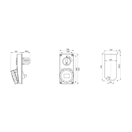 Priza industriala cu interblocaj verticala - WITHOUT BOTTOM - WITHOUT FUSE-HOLDER BASE - 3P+N+E 63A 100-130V - 50/60HZ 4H - IP67 Gewiss