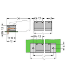THT male header; 1.0 x 1.0 mm solder pin; angled; Pin spacing 7.5 mm; 13-pole; gray Wago