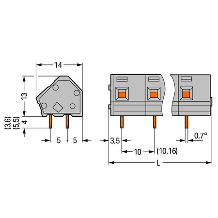 Solder pin dimensions: 0.7 x 0.7 mm;