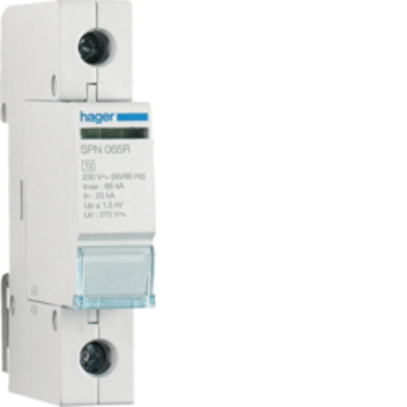 Descărcător supratensiune 1P 65kA debroșabil+contact Hager