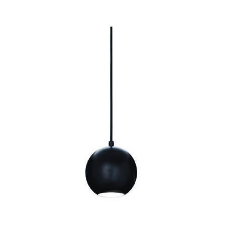 Corp de iluminat suspendat, cu abajur sferic. Cadrul metalic cat si abajurul sunt disponibile intr-un finisaj cromat, alb sau negru mat. Cablul electric este reglabil in lungime. Pendul este dotat cu 1 bec (inclus), cu soclu de tip GU10 dar se poate echipa optional cu becuri tip LED, halogen sau economice. Fiind un accesoriu de design de tip modern aduce un plus de refinament incaperilor indeplinindu-si in acelasi timp si rolul functional