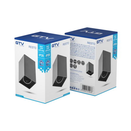Spot - Ceiling light fixture RESTO, PC, 80x80x125mm, IP20, max 20W, square, black GTV