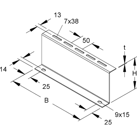 Perforatie de prindere a tavii: 7 x 38 mm