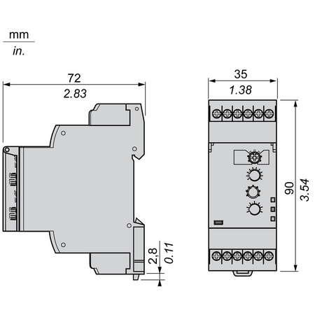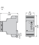 gama de produse: Harmony Control Relays tip releu: Relee de control al vitezei Tip produs sau componenta: Speed control relay nume releu: RM35S parametri monitorizati ai releului: Supraturatie Subturatie interval timp de intarziere: 0.6...60 s adjustable on energisation intarziere (toleranţă: 0...10 % din valoarea intregii scale) capacitatea de comutare in VA: 1250 VA curentul minim de comutare: 10 mA la 5 V c.c. consum de putere maxim in VA: 5 VA c.a. Interval de masurare: 0,05...0,5 s 0,5...5 min 1...10 min 1...10 s 0,5...5 s 0,1...1 s 0,1...1 min categorie de utilizare: AC-12 conformitate cu SR EN 60947-5-1 AC-13 conformitate cu SR EN 60947-5-1 AC-14 conformitate cu SR EN 60947-5-1 AC-15 conformitate cu SR EN 60947-5-1 DC-12 conformitate cu SR EN 60947-5-1 DC-13 conformitate cu SR EN 60947-5-1 DC-14 conformitate cu SR EN 60947-5-1 interval de masura: 0.05...600 s time delay: Adjustable 0.6...60 s Ti- inhibition time delay upon startup rest time in memory mode: 50 ms contact S2 in modul memorare pe intarziere 1 s tensiune Un in memory mode cu intarziere tensiunea maxima de comutatie: 250 V c.a./c.c. [Un] rated nominal voltage: 24...240 V c.a./c.c. 50/60 Hz non self-powered limitele tensiunii de alimentare: 20,4…264 V c.a./c.c. consum de putere maxim in W: 3 W c.c. latime: 35 mm contacte de iesire: 1 C/O Material contacte: Fara cadmiu curent nominal de iesire: 5 A delay at power up: 0,05 s histerezis: 5 % din prag precizie de masurare: +/- 10 % din valoarea la capatul scarii precizie de repetare: +/- 0,5 % pentru circuit de intrare şi măsură +/- 0,5 % pentru temporizare eroare de masurare: +/- 0.1 %/°C cu variaţia temperaturii < +/- 1 % din intreaga gamă cu variaţie de tensiune frecventa de intrare: 0,0017…20 Hz timp de raspuns: 15 ms max (privind trecerea pragului) polaritate: Polaritate reversibila pe sursa c.c. setare prag: 10...100 % supply voltage for sensor: 11.5...12.5 V curent maxim de alimentare pentru senzori: 40 mA pentru < 24 V c.a. la 25 °C 40 mA pentru < 24 V c.c. la 25 °C 50 mA pentru 24...240 V c.a. 50 mA pentru 24...240 V c.c. durata impulsului: >= 5 ms valoare ridicată >= 5 ms starea jos compatibilitate intrare: Senzor 3 fire (E1) PNP sau NPN, 12 V, 50 mA Senzor NAMUR (E2), 12 V, 1,5 kOhm Intrare tensiune (E1), 0...30 V, 9,5 kOhm, stare ridicata >= 4.5 V stare scazuta <= 1 V Intrare pe contact liber de potenţial (E1), 12 V, 9,5 kOhm marcaj: CE : EMC 89/336/EEC CE : 73/23/EEC categorie de supratensiune: III conforming to SR EN 60664-1 rezistenta de izolatie: > 500 MΩ la 500 V c.c. between supply and relay output conformitate cu IEC 60255-5 > 500 MΩ la 500 V c.c. between measurement and relay output conformitate cu SR EN 60664-1 > 1 MOhm la 500 V c.c. between supply and measurement conformitate cu IEC 60255-5 > 500 MΩ la 500 V c.c. between supply and relay output conformitate cu SR EN 60664-1 > 500 MΩ la 500 V c.c. between measurement and relay output conformitate cu IEC 60255-5 > 1 MOhm la 500 V c.c. between supply and measurement conformitate cu SR EN 60664-1 [Ui] tensiune nominala de izolatie: 250 V conformitate cu SR EN 60664-1 operating voltage tolerance: - 15 % + 10 % Un frecventa de alimentare: 50/60 Hz +/- 10 % pozitie de functionare: Orice pozitie fără declasare conexiuni - borne: Borne cu surub, 1 x 0.5...1 x 4 mm² (AWG 20...AWG 11) solid fara terminale de cablu Borne cu surub, 3 x 0.5 - 2 x 2.5 mm² (AWG 20...AWG 14) solid fara terminale de cablu Borne cu surub, 1 x 0.2 - 1 x 2.5 mm² (AWG 24...AWG 12) flexibil cu pini Borne cu surub, 2 x 0.2 - 2 x 1.5 mm² (AWG 24 - AWG 16) flexibil cu pini cuplu de strangere: 0,6…1 N.m conformitate cu IEC 60947-1 material carcasa: Plastic cu autostingere stare LED: 1 LED verde pentru alimentat 1 LED galben pentru inhibat 1 LED galben pentru releu (R) suport de montare: Sina DIN simetrica, 35 mm conformitate cu IEC 60715 Durabilitate electrica: 100000 cic durabilitate mecanica: 30000000 cic rata de operare: <= 360 acţionări/oră sarcină nominală tip de control: Without test button imunitate la microintreruperi: 50 ms compatibilitate electromagnetica: Emisii standard pentru mediul industrial conformitate cu IEC 61000-6-4 Emisii standard pentru mediul rezidenţial, comercial şi uşor industrial conformitate cu IEC 61000-6-3 Imunitate pentru medii industriale conformitate cu NF EN/IEC 61000-6-2 standarde: NF EN 60255-6 IEC 60255-6 certificari produs: C-Tick GOST UL GL CSA temperatura ambietala pentru depozitare: -40…70 °C temperatura ambientala de functionare: -20…50 °C umiditate relativa: 95 % la 55 °C conformitate cu IEC 60068-2-30 rezistenta la vibratii: 0.35 mm (f= 5…57,6 Hz) conforming to IEC 60068-2-6/IEC 60255-21-1 1 gn (f= 57,6…150 Hz) conforming to IEC 60068-2-6/IEC 60255-21-1 rezistenta la socuri: 15 gn pentru 11 ms conformitate cu IEC 60255-21-1 grad de protectie IP: IP20 conformitate cu SR EN 60529 (borne) IP30 conformitate cu SR EN 60529 (carcasă) grad de poluare: 3 conformitate cu SR EN 60664-1 tensiune de incercare: 2 kV c.a. 50 Hz unda de soc nedisipata: 4 kV