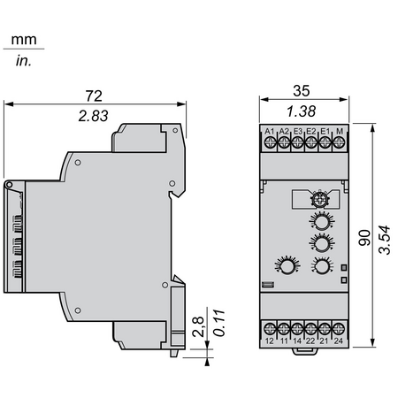gama de produse: Harmony Control Relays tip releu: Releu de control al curentului Tip produs sau componenta: Current control relay nume releu: RM35JA parametri monitorizati ai releului: Detectare supracurent si subcurent tip decalare: Adjustable 0.3...30 s, 0 + 10 % Tt- time delay upon fault Adjustable 1...20 s, 0 + 10 % Ti- inhibition time delay upon startup capacitatea de comutare in VA: 1250 VA curentul minim de comutare: 10 mA la 5 V c.c. curent maxim de comutatie: 5 A c.a./c.c. consum de putere maxim in VA: 3,5 VA c.a. interval de masura: 150 mA...15 A curent c.a./c.c. categorie de utilizare: AC-12 conformitate cu SR EN 60947-5-1 AC-13 conformitate cu SR EN 60947-5-1 AC-14 conformitate cu SR EN 60947-5-1 AC-15 conformitate cu SR EN 60947-5-1 DC-12 conformitate cu SR EN 60947-5-1 DC-13 conformitate cu SR EN 60947-5-1 DC-14 conformitate cu SR EN 60947-5-1 tip si compozitie contacte: 2 C/O resetare timp: 1500 ms temporizare tensiunea maxima de comutatie: 250 V c.a./c.c. limitele tensiunii de alimentare: 20,4…264 V c.a./c.c. operating voltage tolerance: - 15 % + 10 % Un consum de putere maxim in W: 0,6 W c.c. frecventa circuit de comanda: 40...70 Hz +/- 10 % rezistenta la borne: 0,005 Ohm la terminalele E3-M 0,015 Ohm la terminalele E2-M 0,05 Ohm la terminalele E1-M contacte de iesire: 2 C/O curent nominal de iesire: 5 A cilclul maxim de masura: 30 ms ciclu de măsurare ca valoare true rms histerezis: 5…50 % din setare prag delay at power up: 0,3 s precizie de masurare: +/- 10 % din valoarea la capatul scarii precizie de repetare: +/- 0,5 % pentru circuit de intrare şi măsură +/- 2 % pentru temporizare eroare de masurare: 0,05 %/°C cu variaţia temperaturii 1 pe volt peste gama de măsură cu variaţie de tensiune polaritate: Nu c.c. setare prag: 10...100 % marcaj: CE : EMC 89/336/EEC CE : 73/23/EEC categorie de supratensiune: III conforming to SR EN 60664-1 rezistenta de izolatie: > 500 MΩ la 500 V c.c. between supply and relay output conformitate cu IEC 60255-5 > 500 MΩ la 500 V c.c. between measurement and relay output conformitate cu SR EN 60664-1 > 1 MOhm la 500 V c.c. between supply and measurement conformitate cu IEC 60255-5 > 500 MΩ la 500 V c.c. between supply and relay output conformitate cu SR EN 60664-1 > 500 MΩ la 500 V c.c. between measurement and relay output conformitate cu IEC 60255-5 > 1 MOhm la 500 V c.c. between supply and measurement conformitate cu SR EN 60664-1 [Ui] tensiune nominala de izolatie: 250 V conformitate cu SR EN 60664-1 izolatie: Intre alimentare si masurare pozitie de functionare: Orice pozitie fără declasare conexiuni - borne: Borne cu surub, 1 x 0.5...1 x 4 mm² (AWG 20...AWG 11) solid fara terminale de cablu Borne cu surub, 3 x 0.5 - 2 x 2.5 mm² (AWG 20...AWG 14) solid fara terminale de cablu Borne cu surub, 1 x 0.2 - 1 x 2.5 mm² (AWG 24...AWG 12) flexibil cu pini Borne cu surub, 2 x 0.2 - 2 x 1.5 mm² (AWG 24 - AWG 16) flexibil cu pini cuplu de strangere: 0,6…1 N.m conformitate cu IEC 60947-1 material carcasa: Plastic cu autostingere semnalizare locala: LED (verde) for alimentat LED (galben) for relay ON suport de montare: Sina DIN simetrica, 35 mm conformitate cu IEC 60715 Durabilitate electrica: 100000 cic durabilitate mecanica: 30000000 cic rata de operare: <= 360 acţionări/oră sarcină nominală [Us] tensiune nominala de alimentare: 24...240 V c.a./c.c. 50/60 Hz non self-powered fiabilitate securitate date: MTTFd = 296.8 ani B10d = 270000 Material contacte: Fara cadmiu latime: 35 mm tip de control: Without test button greutate neta: 0,13 kg imunitate la microintreruperi: 50 ms compatibilitate electromagnetica: Emisii standard pentru mediul industrial conforming to IEC 61000-6-4 Emisii standard pentru mediul rezidenţial, comercial şi uşor industrial conforming to IEC 61000-6-3 Imunitate pentru medii industriale conforming to NF EN/IEC 61000-6-2 standarde: IEC 60255-6 certificari produs: GL UL GOST C-Tick CSA temperatura ambietala pentru depozitare: -40…70 °C temperatura ambientala de utilizare: -20…50 °C umiditate relativa: 95 % la 55 °C conformitate cu IEC 60068-2-30 rezistenta la vibratii: 0.35 mm (f= 5…57,6 Hz) conforming to IEC 60068-2-6 1 gn (f= 57,6…150 Hz) conforming to IEC 60255-21-1 rezistenta la socuri: 15 gn pentru 11 ms conformitate cu IEC 60255-21-1 grad de protectie IP: IP20 conformitate cu SR EN 60529 (borne) IP30 conformitate cu SR EN 60529 (carcasă) grad de poluare: 3 conformitate cu SR EN 60664-1 tensiune de incercare: 2 kV c.a. 50 Hz, 1 min. conformitate cu IEC 60255-5 2 kV c.a. 50 Hz, 1 min. conformitate cu SR EN 60664-1 unda de soc nedisipativa: 4 kV conformitate cu IEC 60255-5 4 kV conformitate cu SR EN 60664-1 4 kV conformitate cu IEC 61000-4-5