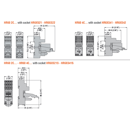 Releu industrial cu indicator led si actuator mecanic, 12VDC, 5A, 4 C/O CONTACT. fixare in soclu HR6XS4...