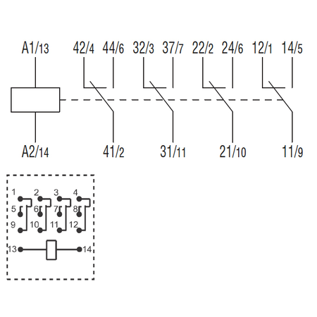 Releu industrial cu indicator led si actuator mecanic, 12VDC, 5A, 4 C/O CONTACT. fixare in soclu HR6XS4... Lovato