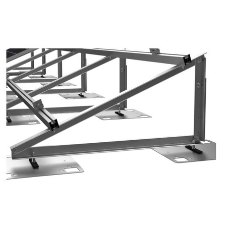Acest suport pentru panouri fotovoltaice este ideal pentru montarea panourilor solare la un unghi reglabil între 20 și 35 de grade, optimizând astfel expunerea la soare și eficiența energetică.