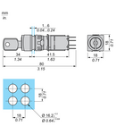 gama de produse: Harmony XB6 Tip produs sau componenta: Selector complet nume scurt al dispozitivului: XB6 material rama: Plastic diametrul de montaj: 16 mm cantitate indivizibila de vanzare: 1 pozitie de operare: Orice pozitie forma a capului unitatii de semnalizare: Patrat tip de operator: fără revenire profil utilizator: comutator cu cheie informatii de pozitie operator: 2 pozitii 70° tip de blocaj: Key 200 pozitie de scoatere cheie: In orice pozitie tip si compozitie contacte: 1 NO + 1 NC operare contacte: Decuplare lenta CAD latime globala: 18 mm CAD inaltime globala: 18 mm CAD adancime globala: 80 mm descriere borne ISO nr. 1: (13-14)NO (21-22)NC greutate neta: 0,036 kg deschidere pozitiva: Cu conformitate cu IEC 60947-5-1 anexa K durabilitate mecanica: 200000 cic conexiuni - borne: Conectori Faston, dimensiune conexiune2.8 x 0.5 mm Material contacte: Aliaj de argint (Ag/Ni) protectie la scurtcircuit: 6 A cartuş fuzibil tip gG [Ui] tensiune nominala de izolatie: 250 V (grad de poluare 3) conformitate cu IEC 60947-1 [Uimp] tensiune de tinere la impuls: 4 kV conformitate cu IEC 60947-1 [Ie] curent nominal de utilizare: 3 A la 120 V, AC-15, B300 conformitate cu SR EN 60947-5-1 1,5 A la 240 V, AC-15, B300 conformitate cu SR EN 60947-5-1 0,1 A la 250 V, DC-13, R300 conformitate cu SR EN 60947-5-1 0,22 A la 125 V, DC-13, R300 conformitate cu SR EN 60947-5-1 durabilitate electrica: 1000000 cic, AC-15 la 230 V, rata de functionare 1000000 cic, DC-13 la 230 V, rata de functionare securitatea electrica IEC 60947-5-4: Λ = 10exp(-8) la 5 V si 1 mA cu nivel de incredere 90 % conformitate cu SR EN 60947-5-4 tratament protector: TC temperatura ambietala pentru depozitare: -40…70 °C temperatura ambientala de functionare: -25…70 °C clasa de protectie la electrocutare: Clasa II conforming to IEC 61140 grad de protectie IP: IP65 conformitate cu SR EN 60529 standarde: JIS C8201-5-1 UL 60947-1 JIS C 852 IEC 60947-5-5 CSA C22.2 No 15 SR EN 60947-5-1 IEC 60947-1 JIS C8201-1 certificari produs: GOST CSA UL CCC rezistenta la vibratii: +/- 3 mm (f= 2…500 Hz) conforming to IEC 60068-2-6 5 gn (f= 2…500 Hz) conforming to IEC 60068-2-6 rezistenta la socuri: 30 gn (durata = 18 ms) pentru half sine wave acceleration conformitate cu IEC 60068-2-27 50 gn (durata = 11 ms) pentru half sine wave acceleration conformitate cu IEC 60068-2-27