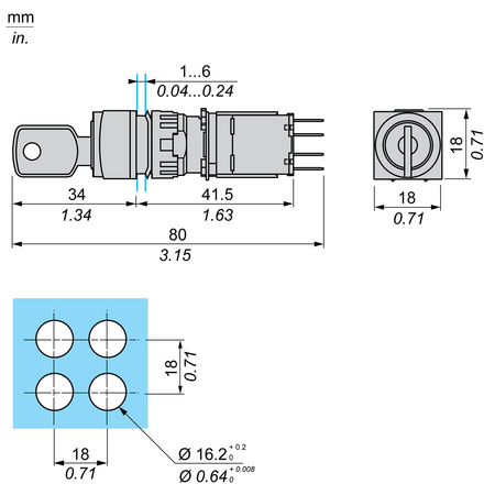 diametrul de montaj: 16 mm
