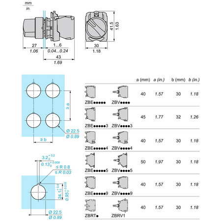 gama de produse: Harmony XB5 Tip produs sau componenta: Illuminated selector switch nume scurt al dispozitivului: XB5 material rama: Plastic gri inchis tip cap: Standard diametrul de montaj: 22,5 mm cantitate indivizibila de vanzare: 1 forma a capului unitatii de semnalizare: Rotund tip de operator: fără revenire profil utilizator: Verde maner standard informatii de pozitie operator: 2 pozitii 90° tip si compozitie contacte: 1 NO + 1 NC operare contacte: Decuplare lenta conexiuni - borne: Borne cu surub, <= 2 x 1.5 mm² cu pini conformitate cu IEC 60947-1 Borne cu surub, >= 1 x 0.22 mm² fara terminale de cablu conformitate cu IEC 60947-1 baza bec: LED integral [Us] tensiune de alimentare nominala: 110...120 V c.a. la 50/60 Hz inaltime: 42 mm latime: 30 mm adancime: 70 mm descriere borne ISO nr. 1: (11-12)NC (13-14)NO greutate neta: 0,516 kg rezistenta la spalare cu presiune inalta: 7000000 Pa la 55 °C, distanta : 0.1 m utilizare contacte: Contacte standard deschidere pozitiva: Cu conformitate cu IEC 60947-5-1 anexa K cuplul de functionare: 0,14 N.m modificarea stării electrice NO durabilitate mecanica: 1000000 cic cuplu de strangere: 0,8…1,2 N.m conformitate cu IEC 60947-1 forma a capului surubului: Cruce compatibil cu Philips nr. 1 surubelnita Cruce compatibil cu pozidriv No 1 surubelnita Perforat compatibil cu plat O 4 mm surubelnita Perforat compatibil cu plat O 5.5 mm surubelnita Material contacte: Aliaj de argint (Ag/Ni) protectie la scurtcircuit: 10 A cartuş fuzibil tip gG conformitate cu SR EN 60947-5-1 [Ith] curent termic conventional in aer liber: 10 A conformitate cu SR EN 60947-5-1 [Ui] tensiune nominala de izolatie: 600 V (grad de poluare 3) conformitate cu IEC 60947-1 [Uimp] tensiune de tinere la impuls: 6 kV conformitate cu IEC 60947-1 [Ie] curent nominal de utilizare: 3 A la 240 V, AC-15, A600 conformitate cu SR EN 60947-5-1 6 A la 120 V, AC-15, A600 conformitate cu SR EN 60947-5-1 0,1 A la 600 V, DC-13, Q600 conformitate cu SR EN 60947-5-1 0,27 A la 250 V, DC-13, Q600 conformitate cu SR EN 60947-5-1 0,55 A la 125 V, DC-13, Q600 conformitate cu SR EN 60947-5-1 1,2 A la 600 V, AC-15, A600 conformitate cu SR EN 60947-5-1 durabilitate electrica: 1000000 cic, AC-15, 2 A la 230 V, rata de functionare 1000000 cic, AC-15, 3 A la 120 V, rata de functionare 1000000 cic, AC-15, 4 A la 24 V, rata de functionare 1000000 cic, DC-13, 0,2 A la 110 V, rata de functionare 1000000 cic, DC-13, 0,5 A la 24 V, rata de functionare securitatea electrica IEC 60947-5-4: Λ < 10exp(-6) la 5 V si 1 mA in mediu curat conformitate cu SR EN 60947-5-4 Λ < 10exp(-8) la 17 V si 5 mA in mediu curat conformitate cu SR EN 60947-5-4 tip semnalizare: Stabil sursa de lumina: Universal LED limitele tensiunii de alimentare: 100…132 V c.a. consum de curent: 14 mA durata de utilizare: 100000 H la tensiunea nominală şi 25 °C incercare la supratensiuni tranzitorii: 1 kV conformitate cu IEC 61000-4-5 prezentare dispozitiv: Produs complet tratament protector: TH temperatura ambietala pentru depozitare: -40…70 °C temperatura ambientala de functionare: -40…70 °C clasa de protectie la electrocutare: Clasa II conforming to IEC 60536 grad de protectie IP: IP66 conformitate cu SR EN 60529 IP67 conformitate cu SR EN 60529 IP69 IP69K grad de protectie NEMA: NEMA 13 NEMA 4X grad de protectie IK: IK04 conforming to IEC 50102 standarde: SR EN 60947-5-1 CSA C22.2 No 15 JIS C8201-5-1 UL 60947-1 IEC 60947-1 SR EN 60947-5-4 JIS C8201-1 certificari produs: BV UL CSA DNV LROS (Lloyds register of shipping) rezistenta la vibratii: 5 gn (f= 2…500 Hz) conforming to IEC 60068-2-6 rezistenta la socuri: 30 gn (durata = 18 ms) pentru half sine wave acceleration conformitate cu IEC 60068-2-27 50 gn (durata = 11 ms) pentru half sine wave acceleration conformitate cu IEC 60068-2-27 rezistenta la tranzienti rapizi: 2 kV conformitate cu IEC 61000-4-4 rezistenta la campuri electromagnetice: 10 V/m conformitate cu IEC 61000-4-3 rezistenta la descarcari electrostatice: 6 kV pe contact (pe părţile metalice) conformitate cu IEC 61000-4-2 8 kV in aer liber (in părţile izolate) conformitate cu IEC 61000-4-2 emisie electromagnetica: Clasa B conformitate cu IEC 55011