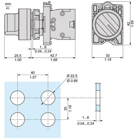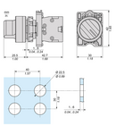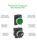 gama de produse: Easy Harmony XA2 Tip produs sau componenta: Selector complet nume scurt al dispozitivului: XA2 prezentare dispozitiv: Produs complet nume componenta: XA2E material rama: Plastic diametrul de montaj: 22,5 mm cantitate indivizibila de vanzare: 1 centru de fixare: >= 30 x 40 mm (panou) - grosime: 1…5 mm mod de fixare: Fixing nut 2…2,4 N.m forma a capului unitatii de semnalizare: Rotund tip de operator: fără revenire profil utilizator: Negru maner standard informatii de pozitie operator: 2 pozitii 90° tip si compozitie contacte: 1 NO operare contacte: Decuplare lenta durabilitate mecanica: 300000 cic conexiuni - borne: , capacitate de prindere: <= 2 x 1.5 mm² , capacitate de prindere: <= 1 x 2.5 mm² , capacitate de prindere: >= 1 x 0.5 mm² Borne Faston 6.3 mm cuplu de strangere: 0,8 N.m protectie la scurtcircuit: 10 A fuzibil tip gL conformitate cu IEC 60269-1 [Ith] curent termic conventional in aer liber: 10 A (borne cu surub) [Ui] tensiune nominala de izolatie: 600 V conformitate cu IEC 60947-1 [Uimp] tensiune de tinere la impuls: 6 kV conformitate cu IEC 60947-1 [Ie] curent nominal de utilizare: 3 A la 240 V, AC-15, A600 0,27 A la 250 V, DC-13, Q600 durabilitate electrica: 500000 cic, AC-15, 3 A la 230 V, rata de functionare 500000 cic, DC-13, 0,2 A la 110 V, rata de functionare securitatea electrica IEC 60947-5-4: Λ < 10exp(-8) la 24 V latime: 30 mm inaltime: 42 mm adancime: 68,2 mm greutate neta: 0,04 kg tip de operator: Fără revenire profil operator: Maner standard tip cap: Standard capac/operator sau culoare lentila: Negru tratament protector: TC temperatura ambietala pentru depozitare: -40…70 °C temperatura ambientala de functionare: -25…55 °C categorie de supratensiune: Class I conforming to IEC 536 grad de protectie IP: IP65 conformitate cu SR EN 60529 grad de protectie IK: IK06 conformitate cu SR EN 60529 standarde: GB 14048.1 IEC 60947-1 GB 14048.5 SR EN 60947-5-1 certificari produs: CCC UE rezistenta la vibratii: 10 gn (f= 40…500 Hz) conforming to IEC 60068-2-6 rezistenta la socuri: 120 gn (durata = 11 ms) pentru half sine wave acceleration conformitate cu IEC 60068-2-27