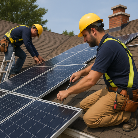 Serviciul nostru de montaj pentru sisteme fotovoltaice este realizat exclusiv cu materiale profesionale, furnizate de catre noi, pentru a garanta siguranta, eficienta si durabilitatea instalatiei. Nu lucram cu materiale aduse de client, pentru ca dorim sa asiguram calitatea intregului sistem, de la panouri, structura si cablaje, pana la invertoare si protectii electrice.