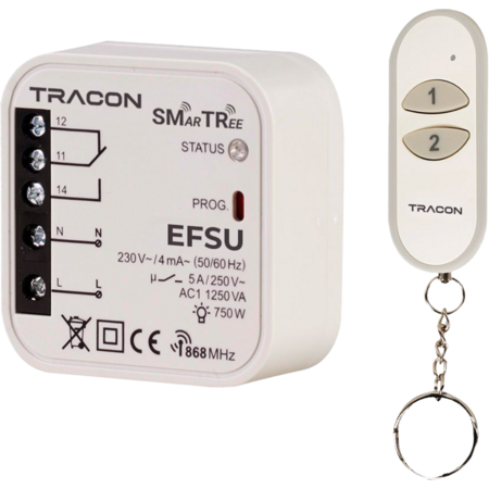 Set controler universal fara fir, breloc 230 V, 50 Hz, 5 A, 1 NO/1 NC, 868.32 MHz Tracon