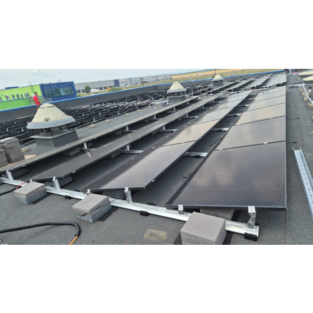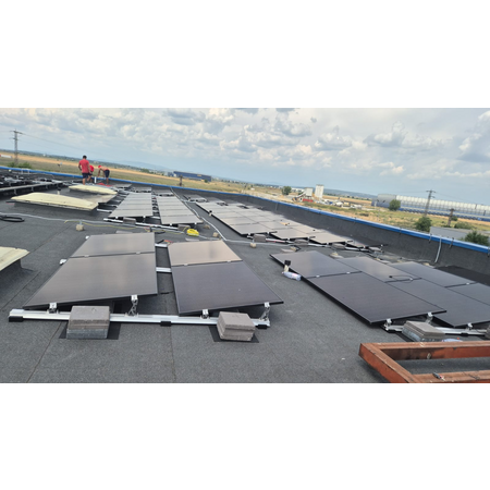 Sisteme complete de fixare pentru acoperis terasa (aluminiu + inox certificat anticoroziv), dimensionate pentru 14 panouri.