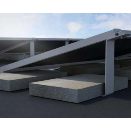 Pachetul de sistem fixare pentru 11 panouri fotovoltaice pe terase plane, configuratie 5+5, este o solutie complet pregatita pentru montaj profesional pe acoperisuri tip terasa fara strapungerea hidroizolatiei. Setul include toate componentele necesare pentru instalarea sigura a panourilor, utilizand structura cu balast si profil din aluminiu.