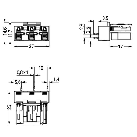 Solder pin dimensions: 1 x 0,8 mm;