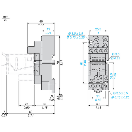 Soclu Rxz, Contact Comb., 10A, 250V, Clema surub -pentru Releu Rxm2, , Rxm4 Schneider