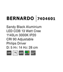 Spot BERNARDO Nisipiu Negru Aluminiu Adjustable LED 13 Wat Philips COB Driver 1140Lm 3000K IP20 Novaluce