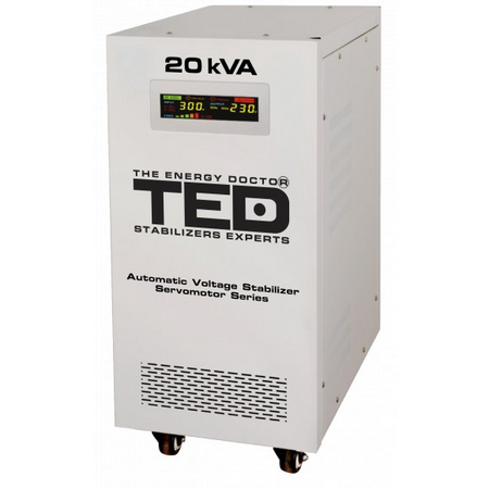 Stabilizatorul de tensiune monofazat TED 20KSVC utilizeaza tehnologia avansata cu servomotor pentru a oferi o reglare precisa a tensiunii electrice. Acest model este conceput pentru functionare in dublu sens, fiind o solutie ideala pentru sistemele fotovoltaice. Dispozitivul ajuta la diminuarea cazurilor in care invertoarele se opresc sau intra in protectie din cauza tensiunilor marite din reteaua furnizorului, asigurand stabilitatea necesara productiei de energie.