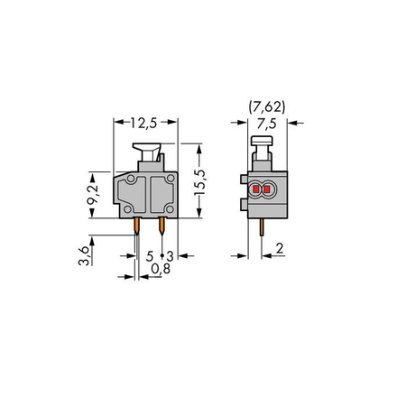 Ratings per: IEC/EN 60664-1; Tesiune nominala (III/3): 400; V Tensiune nominala de supratensiune (III/3): 6; kV Tensiune nominala (III/2): 630; V Tensiune nominala de supratensiune (III/2): 6; kV Tesiune nominala (II/2): 1000; V Tensiune nominala de supratensiune (II/2): 6; kV Curent nominal: 10; A Legend (ratings): (III / 2) ≙ Overvoltage category III / Pollution degree 2; Tensiune nominala UL (Use Group B): 300; V Curent nominal UL (Use Group B): 10; A Tensiune nominala UL (Use Group D): 300; V Curent nominal UL (Use Group D): 10; A Certificari: UL 1059; Tensiune nominala CSA (Use Group B): 300; V Curent nominal CSA (Use Group B): 10; A Tehnologie conexiune: PUSH WIRE®; Tip actionare: Push-button; Solid conductor: 0,2 … 0,75 mm² / 24 … 18 AWG; Strip length: 9 … 10 mm / 0.35 … 0.39 inch; Conductor connection direction to PCB: 0; ° Numar poli: 1; Numar total de conexiuni: 2; Total number of potentials: 1; Numar tipuri de conexiuni: 1; Numar nivele: 1; Distanta intre pini: 7,5/7,62 mm / 0.295/0.3 inch; Latime: 9 mm / 0.354 inch; Inaltime: 19,1 mm / 0.752 inch; Inaltime de la fata: 15,5 mm / 0.61 inch; Adancime: 12,5 mm / 0.492 inch; Lungimea pinului de contact: 3,6; mm Solder pin dimensions: 0,8 x 0,4 mm; Diametrul de gaurire cu toleranta: 1 (+0,1) mm; PCB contact: THT; Solder pin arrangement: within the terminal block (in-line); Number of solder pins per potential: 2; Culoare: gray; Material group: I; Material izolator: Polyamide 66 (PA 66); Flammability class per UL94: V0; Clamping spring material: Chrome nickel spring steel (CrNi); Contact material: Cupru electrolitic(ECu); Contact plating: tin-plated; Fire load: 0,018; MJ Greutate: 0,9; g Temperatura lucru: -60 … +105 °C; Product Group: 4 (Printed Circuit); Tip ambalare: BOX; Tara de origine: CN; GTIN: 4044918831253; Customs tariff number: 85369010000;