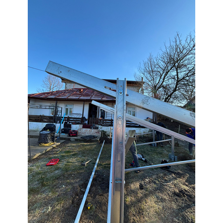Structura de fixare pentru 10 panouri fotovoltaice in configuratie 2x5 este proiectata pentru montaj stabil, rezistent si optim orientat pentru productie ridicata de energie. Kitul include elemente metalice robuste, cu profiluri dimensionate pentru sustinere uniforma si rigidizare, asigurand un unghi fix de 30 grade. Este potrivita pentru acoperisuri tip terasa, suprafete dure sau montaj la sol, unde este necesara o structura solida si echilibrata pentru panouri.