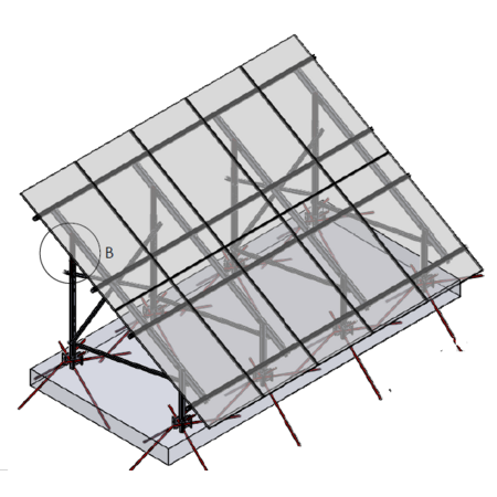 Kitul contine toate componentele principale necesare montajului: coloane frontale si posterioare, grinzi, purlin-uri, bratari de rigidizare, profile U si cleme de prindere pentru panouri. Componentele sunt concepute pentru montaj rapid si sigur, oferind stabilitate in conditii variate de exploatare.